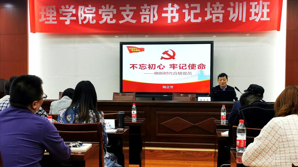 党委在报告厅举行“不忘初心、牢记使命”主题教育之全体党支部书记及中心组理论学习。本次培训邀请了校党委组织部副部长许承保和院党委书记程正芳分别为大家带来精彩的专题党课。