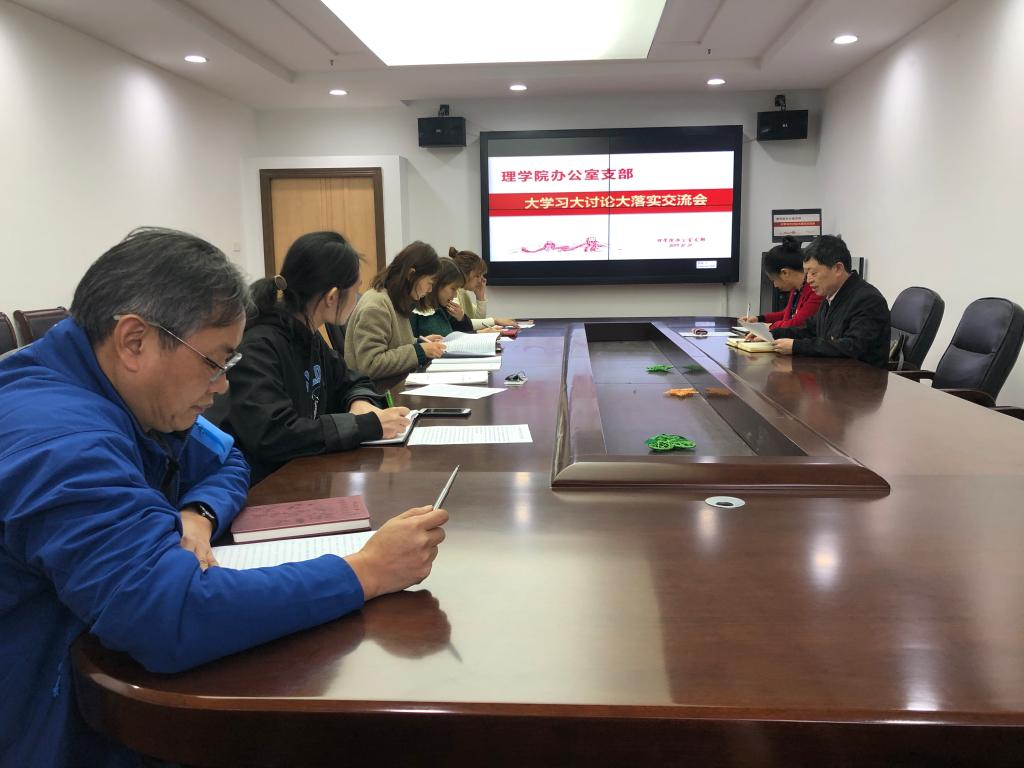办公室党支部在会议室开展了大学习大讨论大落实交流会暨学习强国学习交流活动,本次活动由办公室党支部书记程正芳主持,全体支部党员参加。