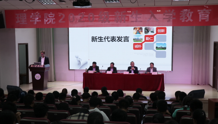2020级新生入学教育第一课在教四楼报告厅举行。院党委书记程正芳、党委副书记桑运川、副院长吴磊、副院长朱映光、国际合作与交流处满萍萍出席,本科生新生班主任、辅导员、全体本研新生200余人参加了本次活动。活动由成人视频