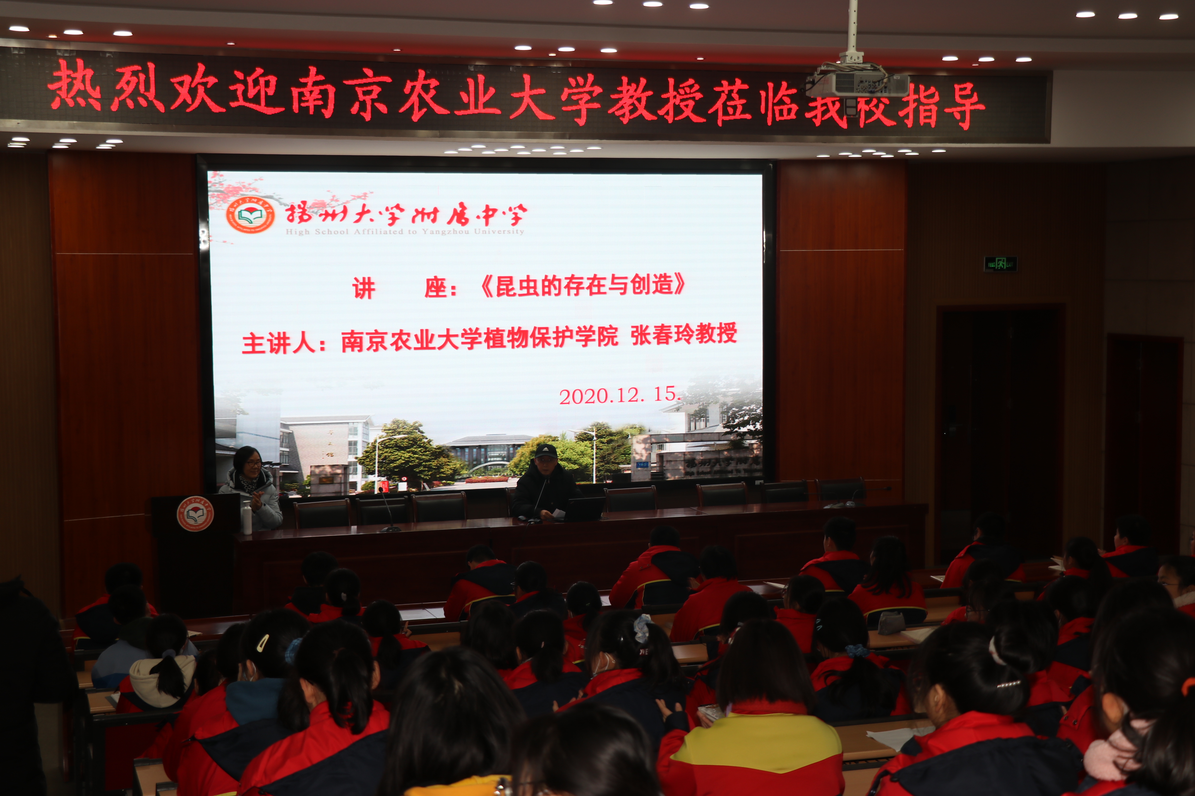 张兆祥老师为同学们介绍了我校的基本情况,并鼓励同学好好学习,提高人生理想。随后邀请植物保护成人视频张春玲教授为该校全体高一学生带来主题为《昆虫的存在与创造》的主题报告。