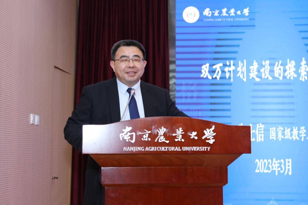 董维春副校长首先对朱士信教授的到来表示热烈欢迎。他回顾了我校参与前三轮本科教育教学审核评估的有关情况,对参评工作取得的优异成绩表示肯定。他指出,这次报告会是我校迎接新一轮本科教学评估工作的首场报告,对凝聚教师思想共识、全面启动迎评工作、深化本科教学内涵建设,具有十分重要的现实意义。他围绕农业特色世界一流大学建设发展目标、传统专业改造和新型专业建设、农业特色通识教育、科教协同育人、本科教学质量文化建设等五个方面,简要介绍了我校新农科建设推进情况,分析了存在的问题与不足,希望通过朱士信教授的精彩报告,打开教师们的眼界,推动我校本科教学状态能够进入到更好的境界。