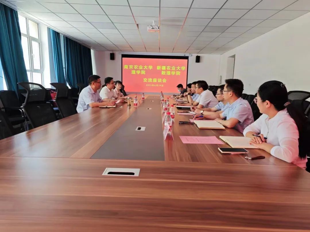 在新疆农业大学,两校三院领导班子成员集体学习了中央新疆工作座谈会精神和中央民族工作会议精神,并就贯彻落实好教育部高校团队对口支援新疆农业大学2023年工作会议有关部署进行了交流探讨。与会人员还就主题教育经验做法、铸牢中华民族共同体意识工作、人才引进培育、师资队伍建设、专业建设以及未来规划等方面进行了座谈交流,就后续深化合作交换了经验想法。