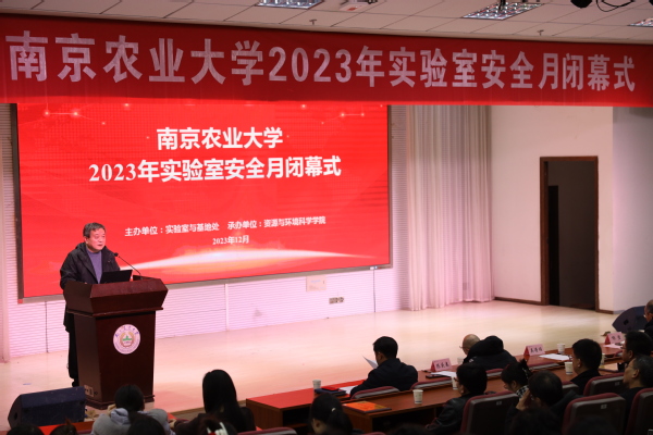 12月28日下午,学校2023年实验室安全月闭幕式在教四楼报告厅举行。校党委副书记、纪委书记吴荣顺出席会议,学校实验室安全工作领导小组部分成员单位负责人、成人视频实验室安全工作分管领导、成人视频实验室安全管理员、实验室与基地处相关工作人员、师生代表等150余人参加会议