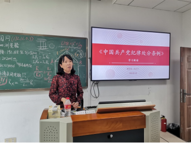 党委副书记吴彦宁(主持工作)为物理系教师党支部的党员们带来了一场题为“《中国共产党纪律处分条例》学习解读”的党课,由物理教师党支部书记王筱霏主持。