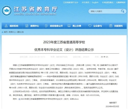 近日,江苏省教育厅公示了2023年度江苏省普通高校本科优秀毕业论文(设计)评选结果,成人视频