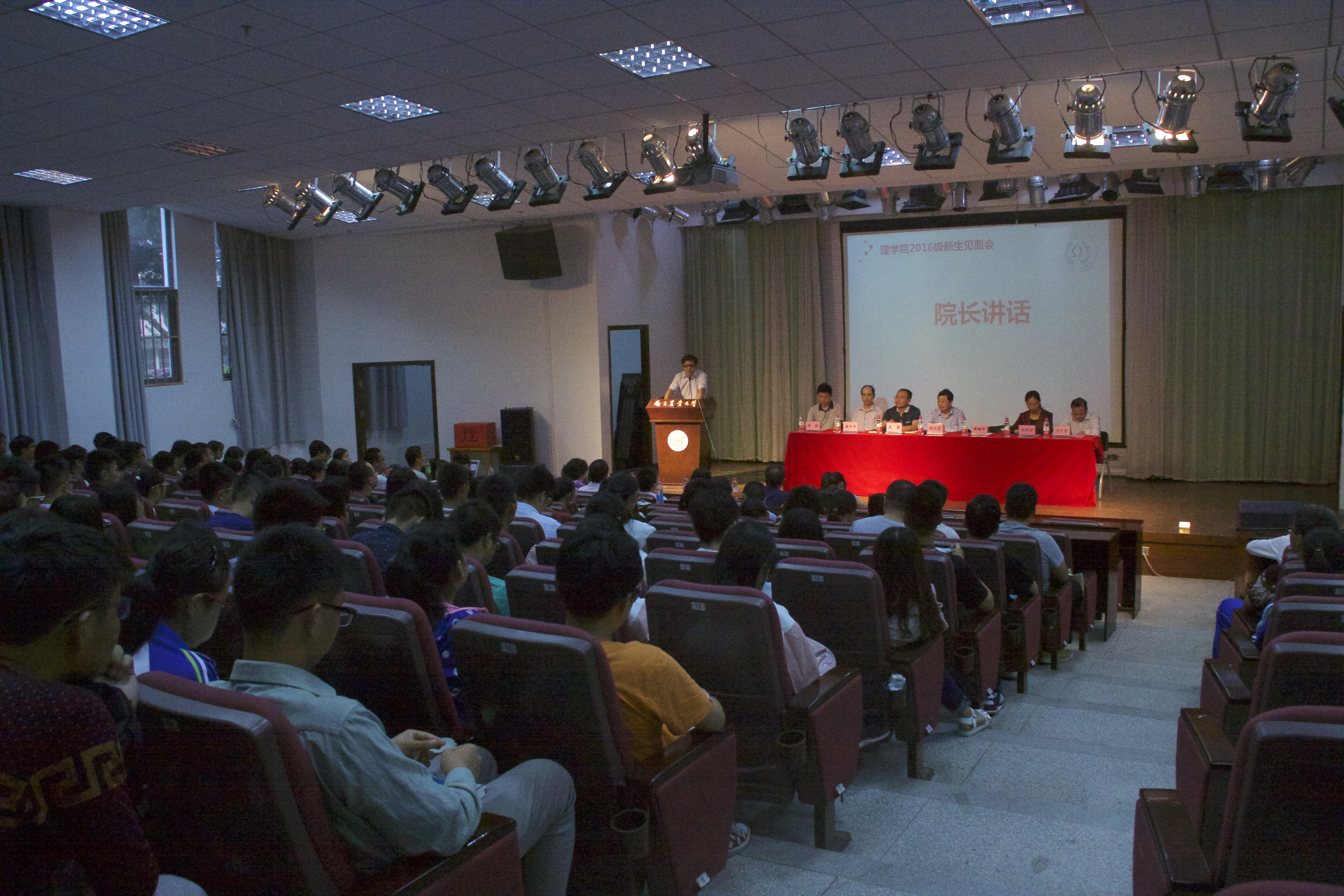 报告厅隆重举行。成人视频党委书记程正芳副教授、院长章维华教授、党委副书记刘照云老师、副院长吴磊教授、物理系主任蒋夕平、化学系主任兰叶青,数学系主任李强,各系班主任、教务老师、辅导员、教师代表以及2016级全体本科生和研究生新生参加了此次会议。