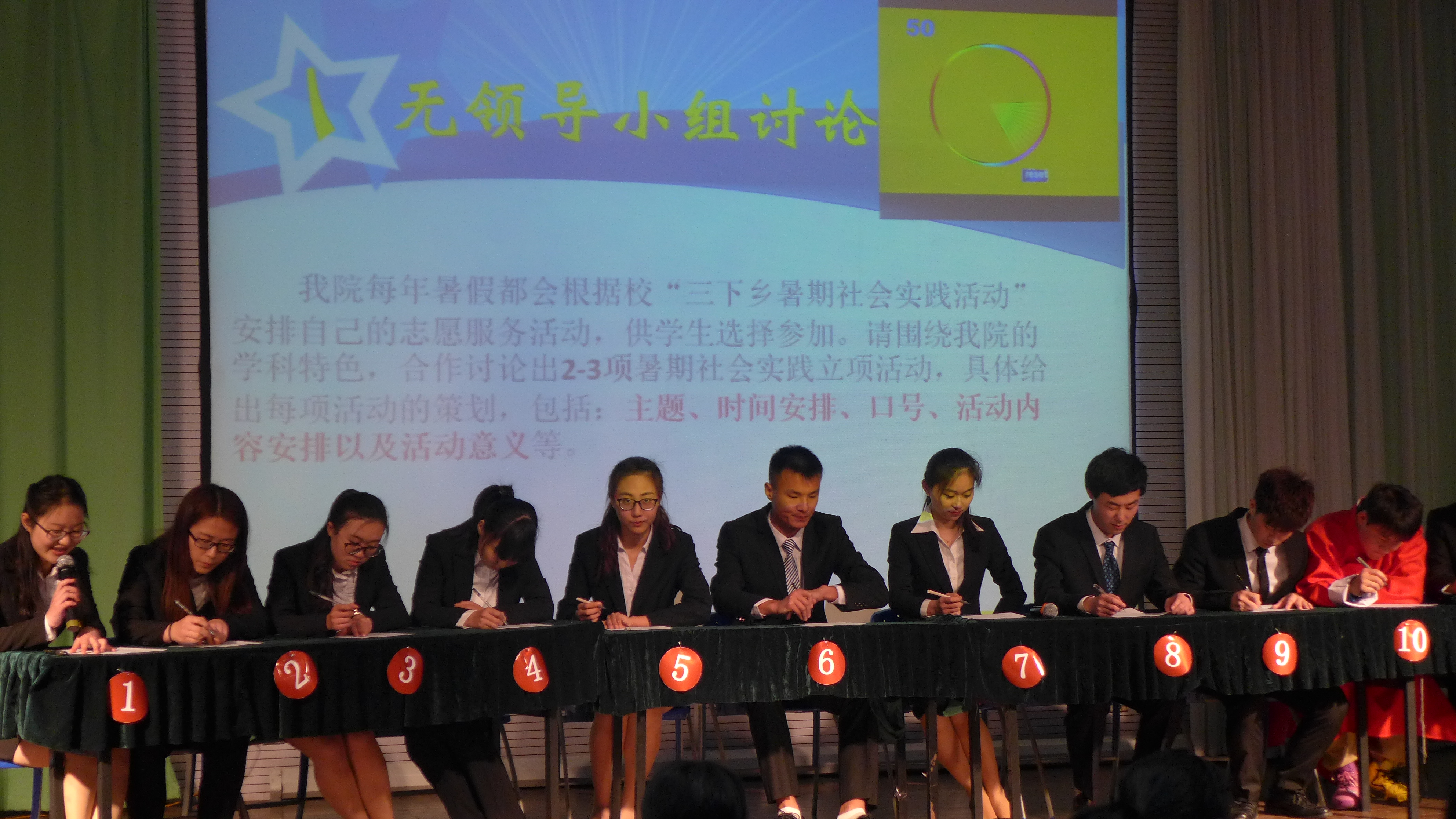 竞选演讲结束后,参赛选手进行了无领导小组讨论。论题定为“围绕成人视频 学科特色,合作讨论2—3项暑期社会实践立项活动”。在进行了各自的观点论述后,参赛选手进行了25分钟的自由讨论时间,他(她)们积极说明自己的看法,在是否应该进行母校回访话题上产生分歧时努力共同解决,让每位选手都有机会发表自己的意见及建议。讨论最后由冀昊琰同学做了相关总结发言。老师们也对选手的讨论做出了相关评价。周玲云老师准确指出讨论不足之处并希望他(她)们能够有更大的突破,提出更新颖的建议。
