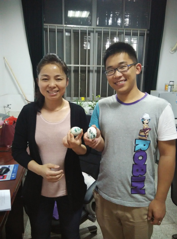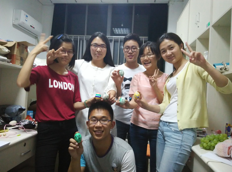 本次活动中同学们不仅一起分享了粽子和咸鸭蛋,在粽香中感受节日的气氛,还和导师共同在咸鸭蛋上涂抹绘画,表达对导师和同学的祝福。创意与灵感齐飞的彩蛋作品让人叹为观止。研一的刘腾给吴磊老师的“辟邪自画像”有趣又温馨;王亚茹将化学反应巧妙地融入彩蛇的身体;陶月红绘有龙舟和屈原的彩蛋后边还有一曲荡气回肠的《离骚》。这些彩蛋凝聚了同学们对导师和同学深深的祝福,和导师共同制作彩蛋的过程中收获了快乐和幸福。大家还纷纷和导师拿着彩蛋合影留念,活动在温馨愉快的气氛中结束。