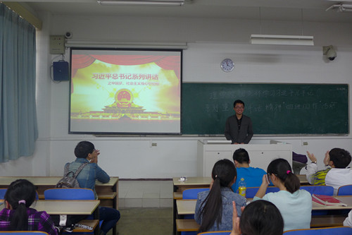 为贯彻落实校团委指示,进一步加强大学生共青团员社会主义核心价值观教育,4月17日下午3:50,成人视频 组织全体大一学生在主楼107教室学习习近平总书记系列重要讲话精神“四进四信”活动。