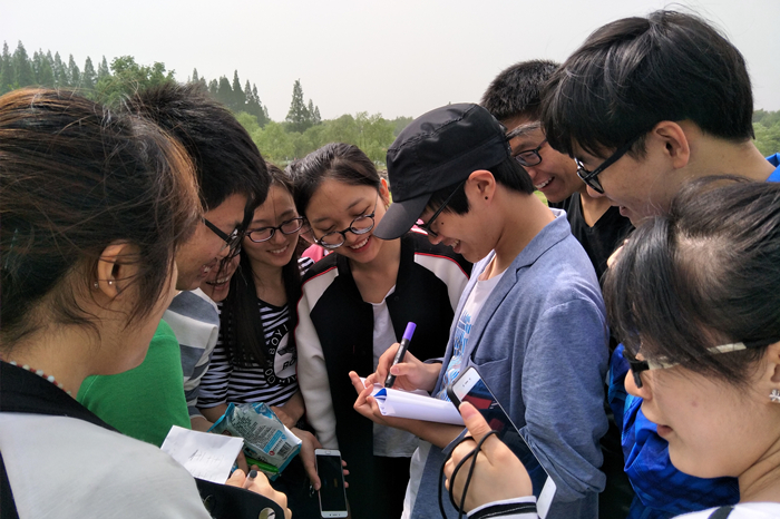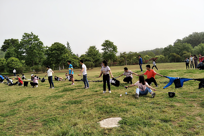 周六上午8时,集合完毕后,学生会成员一齐向着素拓地点南京下马坊遗址公园进发。到达后,大家迅速按照分组列队,准备开始游戏。本次活动主要包括“豆腐渣工程”、“芥末饼干的质问”、“灵魂画师”、“撕名牌大战”几个环节。首先是“豆腐渣工程”:小组成员通过身体或用衣物连接,使本队队伍尽可能的长。在这一关中,大家奇思妙想,团结协作,每位成员都参与其中,体验到了游戏的快乐。第二个环节“芥末饼干的质问”为每队派人抢答,答对,则对方淘汰,答错自己淘汰,淘汰者需吃芥末饼干。这一环节对选手们的知识储备要求较高,选手们出色的表现让人眼前一亮。“灵魂画师”环节则是由一人作画,其余队员猜,在一定时间内猜的多的获胜。这个游戏考验成员们之间的默契程度。最后迎来了精彩且激烈的“撕名牌大战”。首先是两人作战,男生背着女生,开始撕名牌。游戏异常激烈,进攻防守,战略战术,斗智斗勇,不亦乐乎。其次是个人战,每队派一男一女参加,女生持有写着特殊能力的卡片,当出现女生的名牌被撕下,对方却淘汰这种反转场面时更是让在场的同学们大吃一惊,现场充满着欢声笑语。