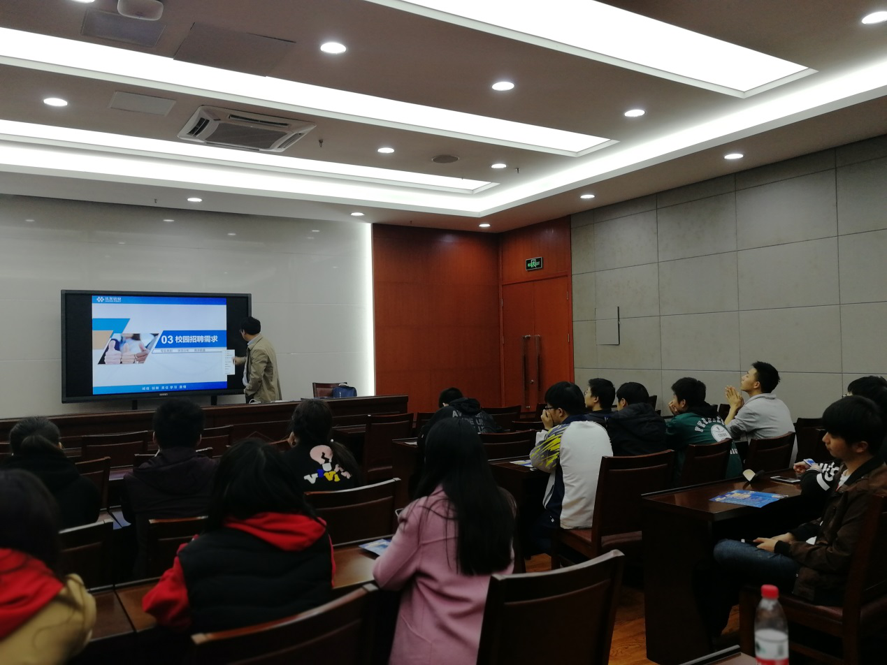 王世豪老师抓住毕业生们关注的核心关键,从公司发展、人才需求、福利待遇、硬件设施等方面就公司情况做了详细介绍,并播放了宣传片让同学们能更加了解成人视频,感受企业魅力。在介绍结束后,王老师还特意留了时间与同学们互动,耐心解答大家的困惑。
