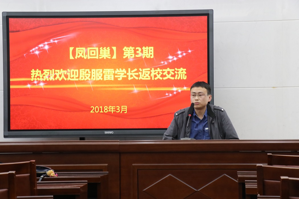 报告厅组织开展了第三期“凤回巢”讲座,本期的主讲人是我院信科专业08届殷服雷;也现任江苏车置宝信息科技股份有限公司平台开发部部门经理,全面负责车置宝应用开发、架构、大数据团队管理工作,负责车置宝二手车交易平台的的研发管理工作;本次讲座还邀请我院副教授陈圆圆老师与高艳军学长莅临现场为同学们解答更多关于考研保研的相关问题。