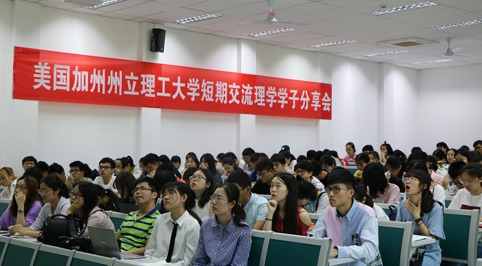 为了开阔同学们的视野,增加同学们对国外学习的了解,提高同学们参与访学交流的积极性,5月9日下午,我院在主楼举办了一场关于美国加州州立理工大学短期访学的经验分享会。本次活动邀请到我院2017年寒假期间前往美国加州州立理工大学的十余位同学就该校的学习环境、中美课堂差异等方面进行了分享。