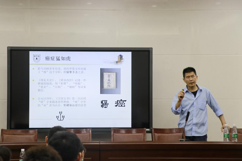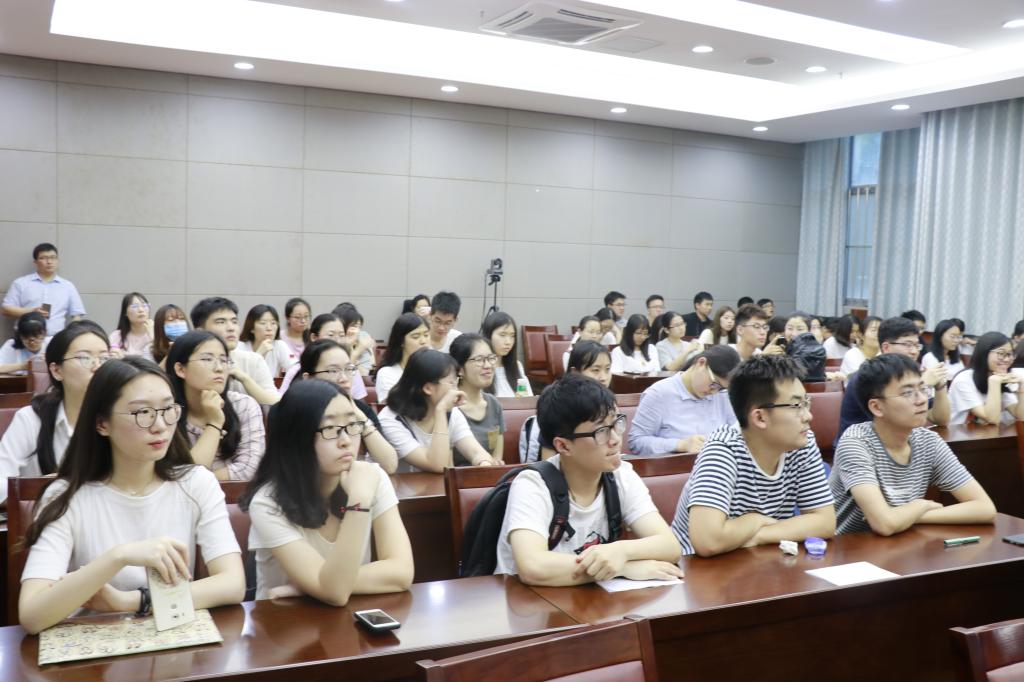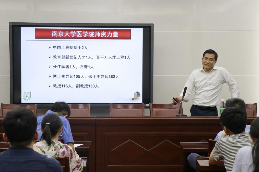 首先,吴俊华副教授就南京大学医成人视频发展沿革、师资力量、学科优势等方面进行简要介绍,展示了南大医成人视频自87年建院至今取得一系列的成果。随后,魏继武教授就其研究方向,围绕实体肿瘤的生物治疗基础研究、临床转化及产业化进行讲解。魏教授着重介绍了肿瘤治疗的发展趋势,加深了大家对肿瘤及癌症的认识,也为在场的其他专业学生开启了有趣的医学世界大门。之后,王宏伟教授激情澎湃地讲述了自己的求学经历,其由农学转为医学的学习经历引起了在场同学的钦佩。王教授就其两个主要的研究方向:以糖皮质激素为主的炎症的治疗;炎症与代谢相互作用进行详细讲解,并积极动员大家加入南京大学医成人视频基础医学学科大家庭。