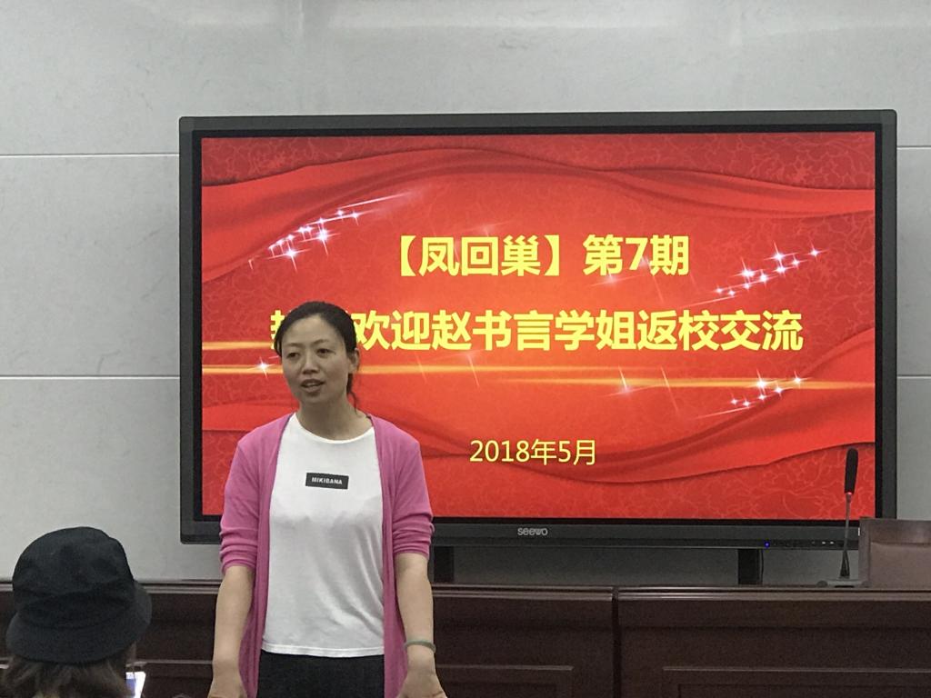 2018年5月19日下午14点到16点,我院在报告厅举行了“凤回巢”第六期经验交流会。我院邀请到毕业于应化091班,直博复旦大学的优秀学姐赵书言为主讲人,党委副书记刘照云及2015级、2016级应化专业的学生也参与了本次交流会。