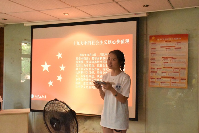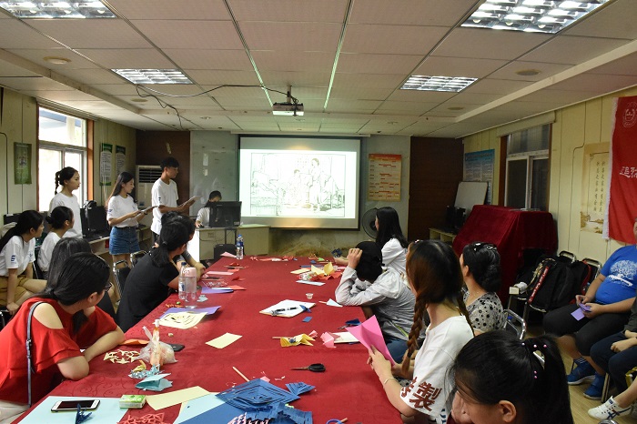 习近平总书记指出,坚定文化自信,是事关国运兴衰、事关文化安全、事关民族精神独立性的大问题。党的十九大报告指出,文化是一个国家、一个民族的灵魂。文化兴国运兴,文化强民族强。为响应习近平总书记在党的十九大报告中“中华优秀传统文化要从娃娃抓起”的号召,我院实践团深入明故宫苑、五老村等社区,通过主题讲座、制作手抄报、绘制文化衫等形式,开展“追烈士情思,品党的十九大精神”系列主题活动。