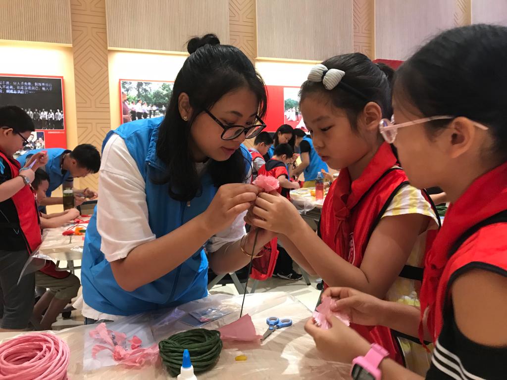 8月16日,团队成员耐心指导小朋友们用彩色皱纹纸制作康乃馨花束,每一份材料的准备都展现着团队成员的细致与负责,每一枝纸花的制作都饱含着崇敬与缅怀。随后,在团队成员的带领下,48名小营员前往雨花台烈士纪念碑献花,进一步抒发自己的缅怀之情。