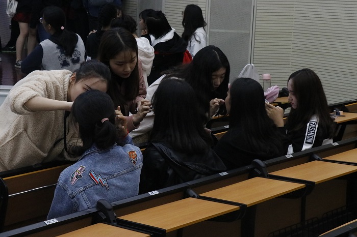 接下来进入第三篇章,信科181班别具一格的小品《甄嬛后传》,戳到了大家的笑点,让全场的气氛再次热烈起来。他们精湛的演技深深吸引了大家的目光,给所有人带来了别致的欢乐。信科182班的合唱《明天你好》以手语舞的形式打动人心,而后的统计181班的音乐剧《another day of sun》让青春的校园气息扑面而来。活力十足的《Ei Ei》让全场在欢快的音乐声在沸腾。伴随着合唱团的歌声,本次晚会落下了帷幕。
