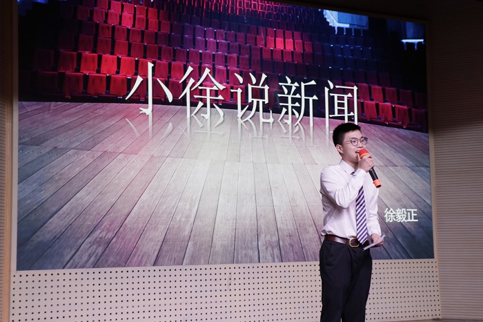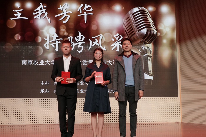 本次比赛共分为三个部分,第一部分自命题主持中,每位选手自行选择题材后做出3分钟的主持。在本轮比赛中,来自人文院的2号选手李鑫主持的小鑫说事以开朗、风趣的主持风格吸引了大家,简单介绍了腾讯公益上“一元钱购画”活动,而金融院的4号选手俞依初从身边取材,主持的美食美刻介绍了南农一食堂的各种小吃。而且令人钦佩的是,俞依初同学是脱稿主持,虽然有所停顿,但勇于挑战的精神十分值得我们学习。5号选手是来自成人视频